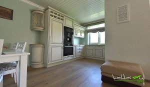 Provanso virtuvė, žalia virtuvė, žali virtuvės baldai, žali klasikiniai baldai