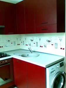 Nuotraukoje tik dalis virtuvės, dėl nedidelio ploto sudėtinga padaryti vientisą vaizdą vienoje nuotraukoje.