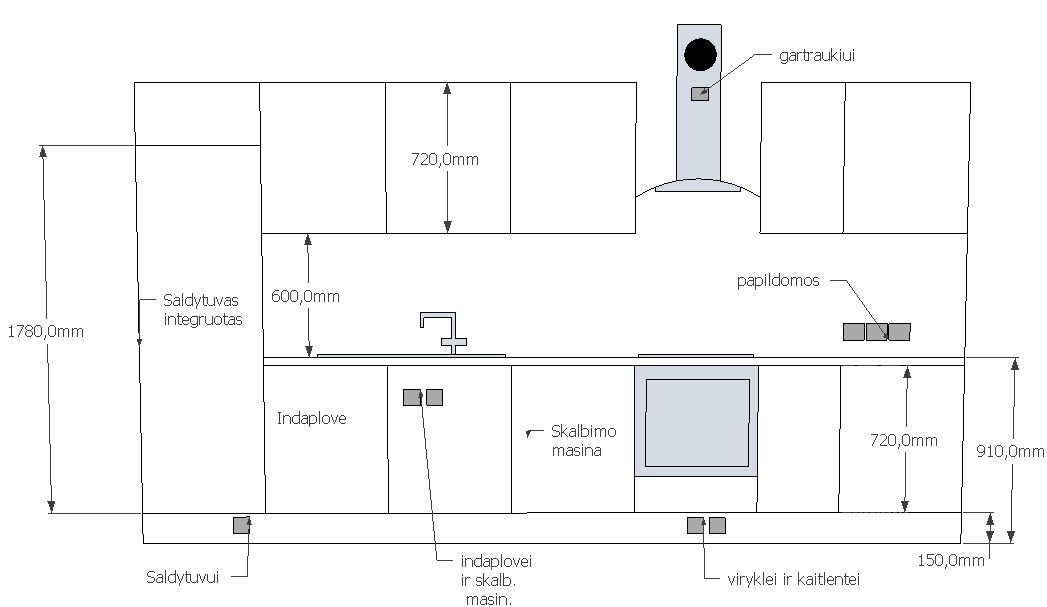 Kol virtuvės baldai yra dar tik planuojami, labai svarbu, kad visi elektros, santechnikos ar dujų įvadai būtų tinkamose vietose, įvertinant saugumo reikalavimus.