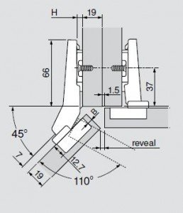 Lankstas 45 laipsnių kampu durelių atidarymui, tinkamas pakabinamoms spintelėms.